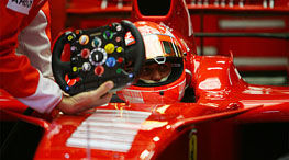 Emotii mari in paddock-ul Scuderiei Ferrari in dimineata zilei de marti. Septuplul campion mondial Michael Schumacher s-a urcat la bordul monopostului Ferrari pentru prima oara dupa un an de pauza si a oferit o demonstratie de zile mari, reusind sa obtina cel mai bun timp in prima zi de tetse de pe circuitul din Catalunya.