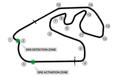 Depăşirile vor fi favorizate în acest an şi de sistemul DRS, care va putea fi activat pe tot parcursul liniei drepte dintre virajele trei şi patru, în timp ce detectarea diferenţei de o secundă se va face înainte de virajul doi. Al doilea sector al circuitului este şi cel mai apreciat de piloţi datorită provocărilor de ordin tehnic pe care le presupune.