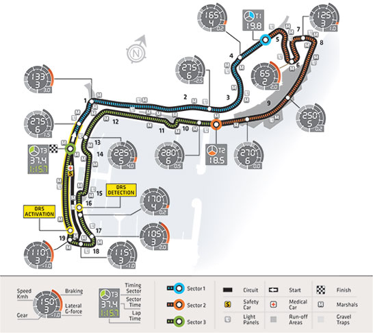 Piloţii vor beneficia de avantajul sistemului DRS numai pe linia de start-sosire, cu punctul de detecţie pentru diferenţa de o secundă dintre piloţi amplasat cu 80 de metri după virajul 16, însă eficienţa tehnologiei va fi limitată de lungimea scăzută a acesteia şi de faptul că nu este perfect dreaptă. De altfel, absenţa liniilor drepte este şi motivul pentru care Monaco este primul circuit care nu beneficiază de două zone DRS, aşa cum s-a întâmplat la fiecare cursă din acest debut de sezon.