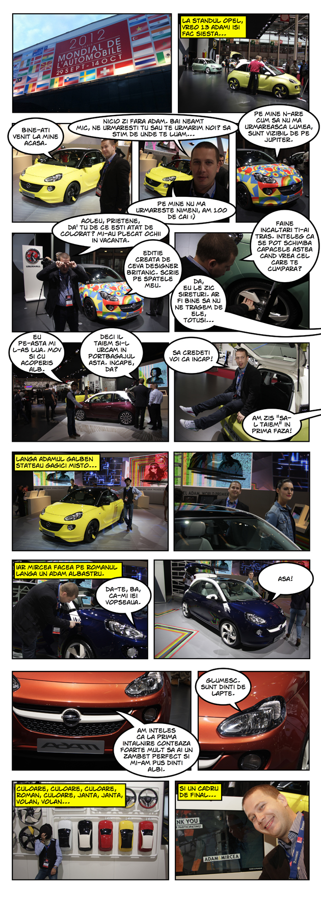 Mircea și Ciprian au ajuns la standul Opel, unde îi așteptau câteva exemplare Opel Adam "îmbrăcate" și fardate în toate stilurile și culorile posibile.