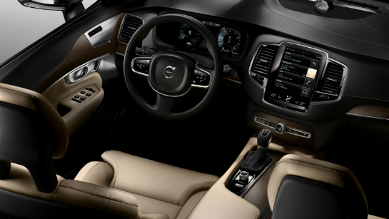 Potrivit comunicatului oficial emis de Volvo, noul XC90 beneficiază de cel mai luxos interior construit vreodată de scandinavi. Totul este reunit în jurul unei console de control cu ecran tactil, asemănătoare unei tablete, care formează inima unui sistem multimedia construit şi el de la zero. Acest sistem este lipsit de butoane și poate accesa o serie de produse și servicii bazate pe Internet.