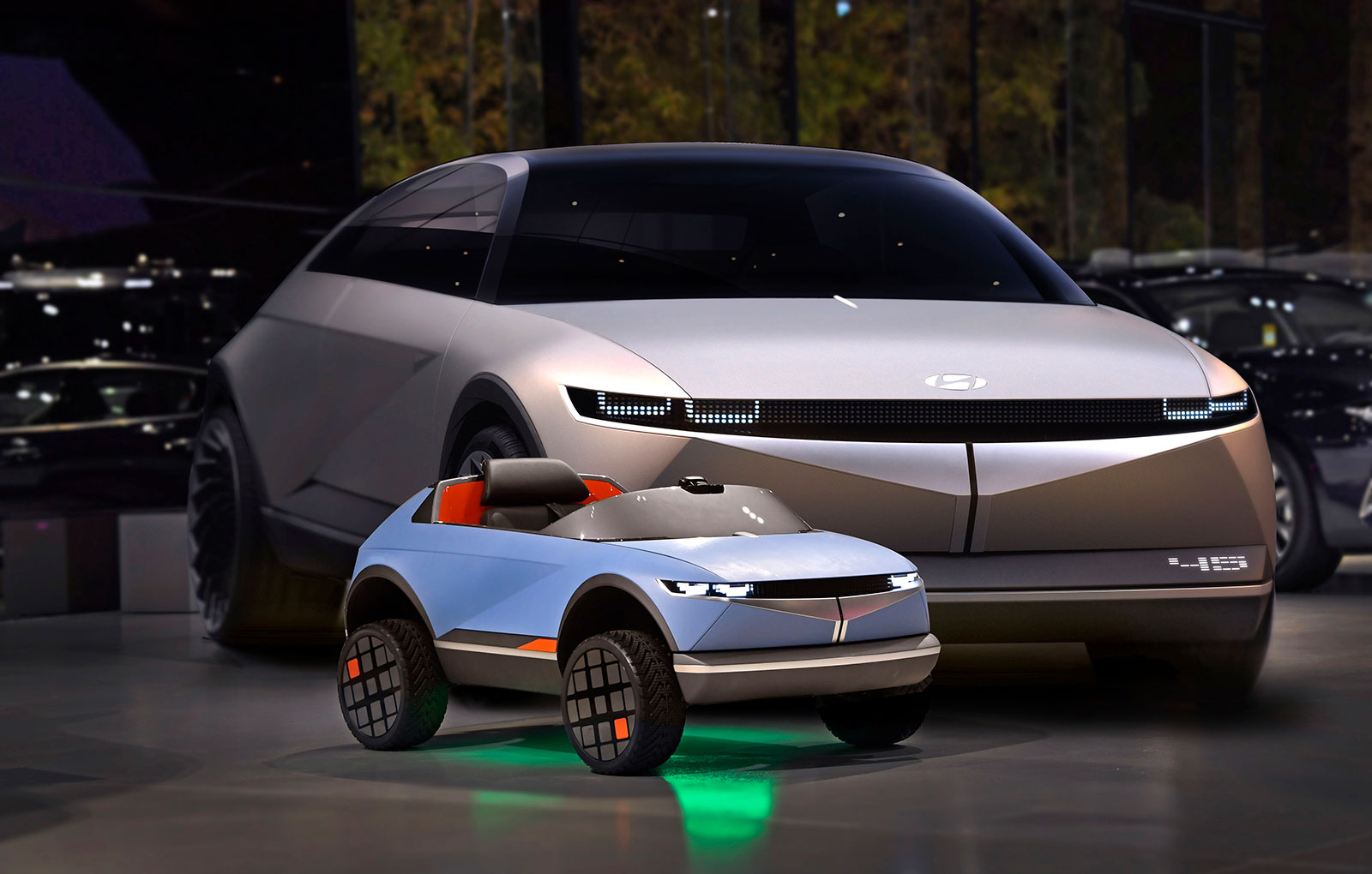 Pornind de la designul lui Concept 45, Hyundai a demarat un proiect dedicat celor mici. Mai exact, constructorul asiatic a dezvoltat un vehicul electric (denumirea oficială încă nu a fost anunțată) de mici dimensiuni.