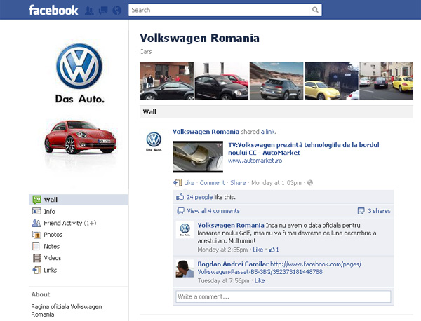Marca germană este extrem de bine văzută în ţara noastră, dar faptul că s-a alăturat târziu Facebook-ului justifică numărul relativ scăzut de fani.