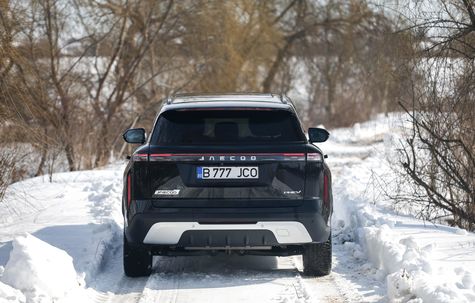 Oglinzile laterale sunt mari și vezi foarte bine în ele. Totodată, primești și un sistem de camere cu vedere la 360 de grade, care oferă o imagine clară, chiar și pe timp de noapte. Apreciez că cei de la Jaecoo au montat suprafețe vitrate mari în jurul stâlpului C, ca să nu ai probleme cu acele unghiuri moarte.